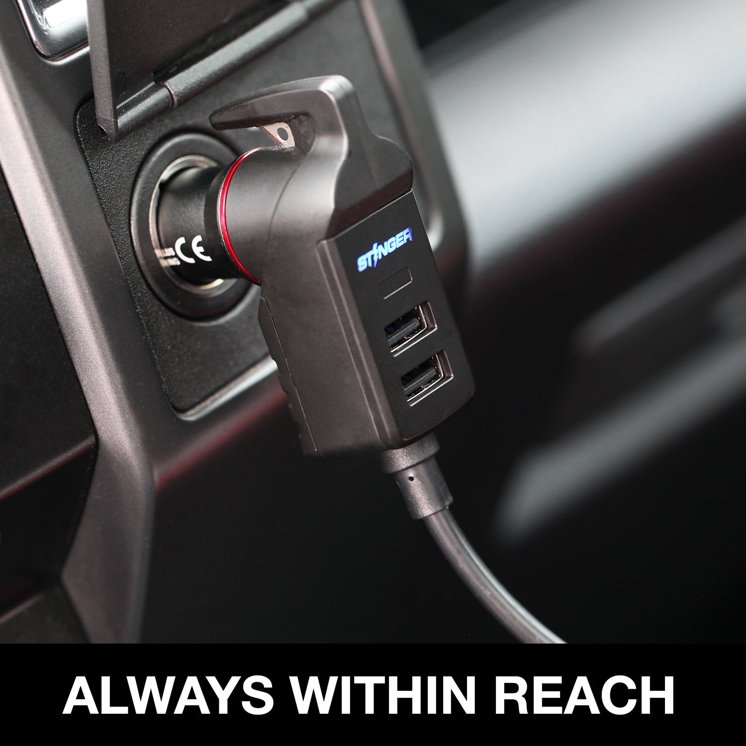 Learn MoreThe Stinger is the first emergency tool ever built with a spring-loaded glass breaker integrated into a tiny USB car charger. Our patented technology makes your escape tool easy to reach whenever you need it.