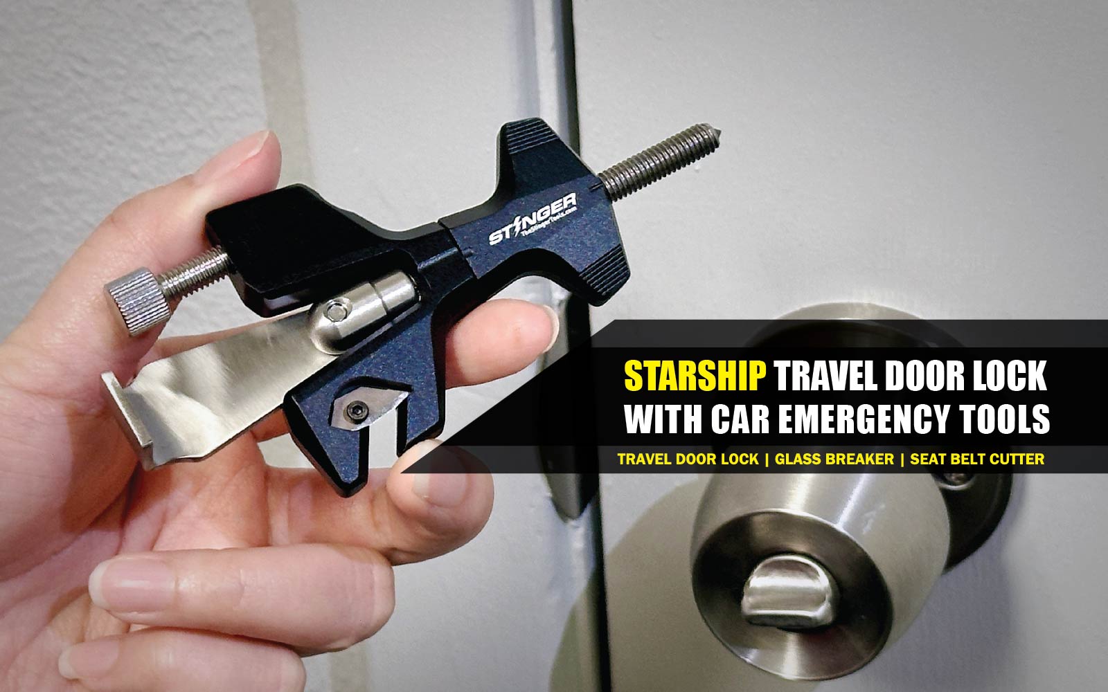 learn moreStarship Travel Door Lock is not only ensures privacy with a sturdy door lock but also comes equipped with life-saving car emergency tools.